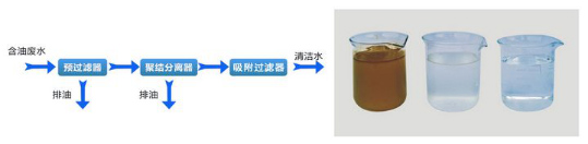 含油廢水處理設備采用全物理法、可靠、方便、的去除及回收含油污水中的分散油和乳化油,使處理后的排放水達到或超過《GB8978-96污水綜合排放標準》一級排放的要求(含油量小于5mg/L)。